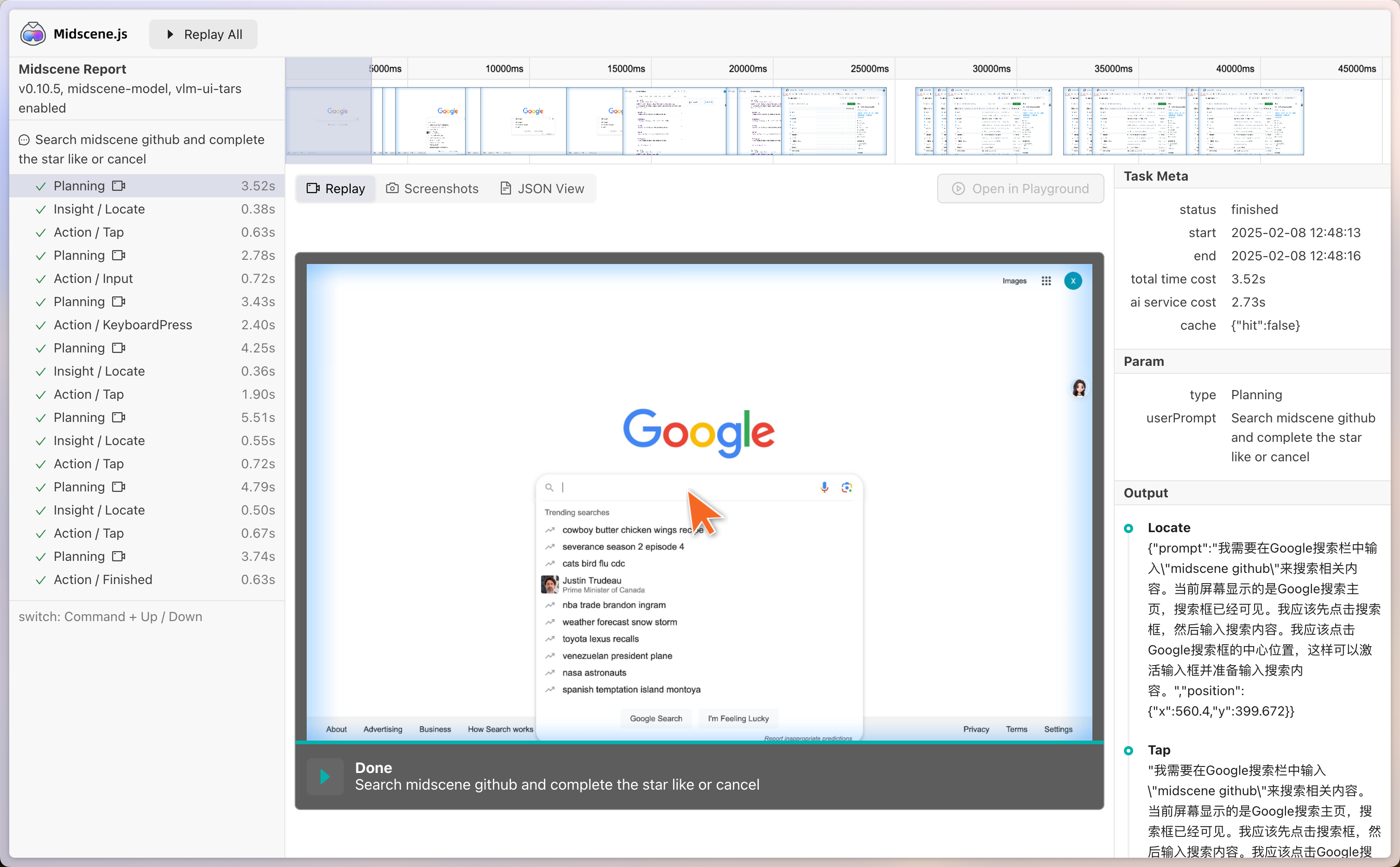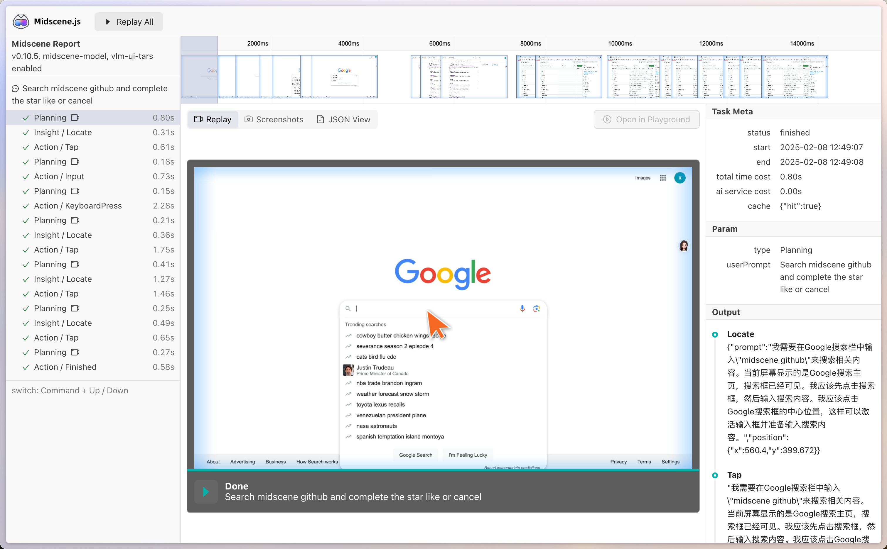 Midscene.js provides AI caching features to improve the stability and speed of the entire AI execution process. The cache mainly refers to caching how AI recognizes page elements. Cached AI query results are used if page elements haven't changed.